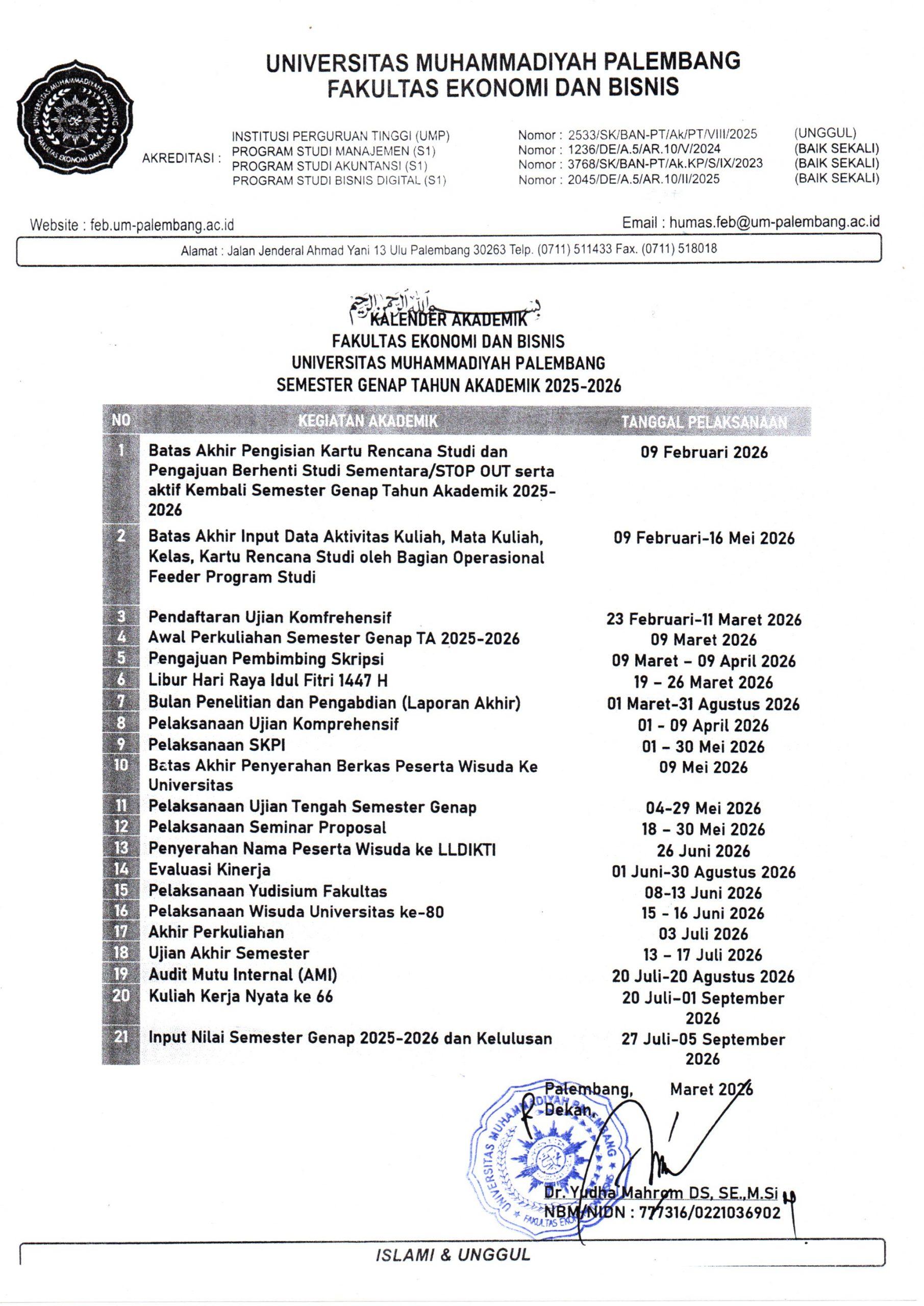 Kalender Akademik Fakultas Ekonomi dan Bisnis UM Palembang